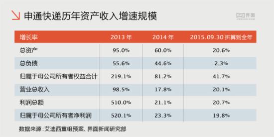 申通快遞歷年資產(chǎn)收入增速規(guī)模